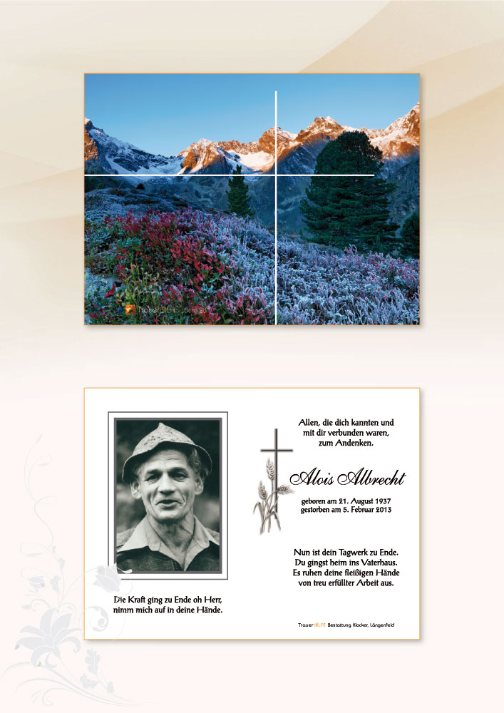 Still bist du von uns geschieden,hin ins Land der Ewigkeit.Schenke Gott dir Ruh und Frieden,nach des Lebens Müh und Leid.