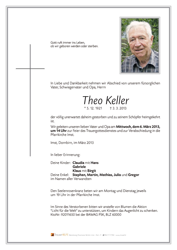 Am Ableben Eures lieben Vaters, Schwiegervaters und Opas möchten