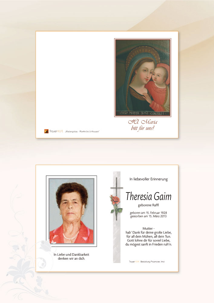 Neue Kerze für Theresia Gaim entzünden.
