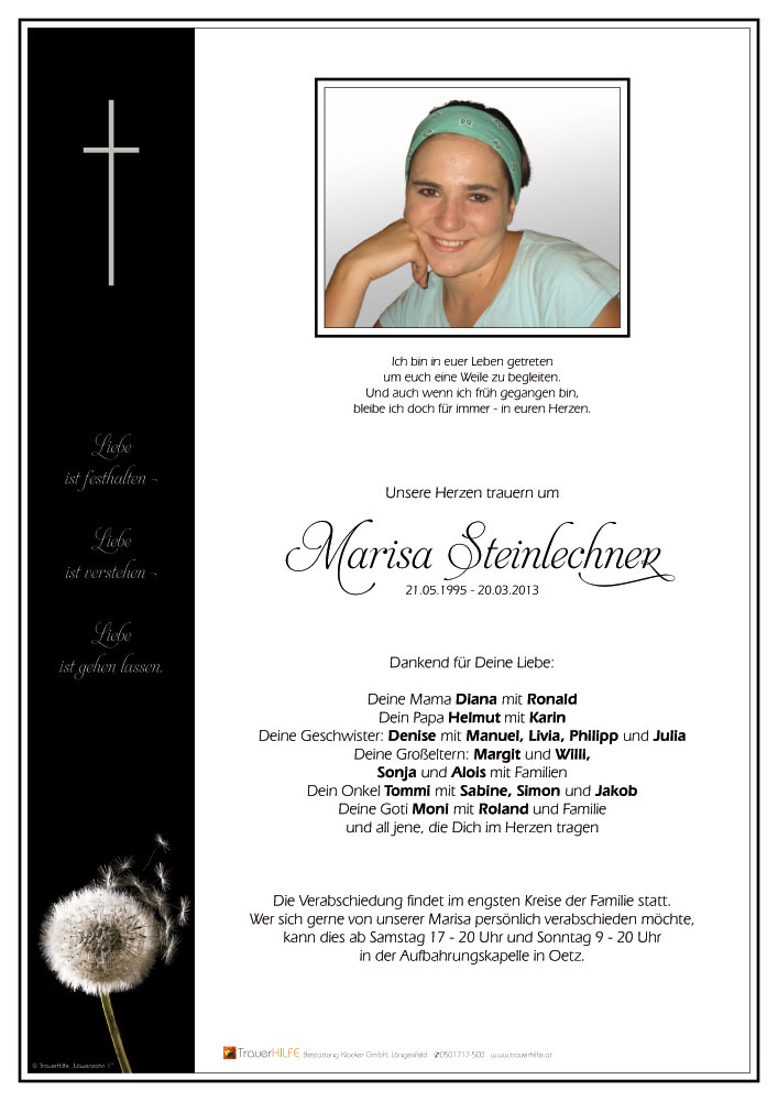 Ich wünsche allen die um Marisa weinen Viel Kraft auf diesem schweren Weg.28.03.2013 13:52 - Lisa