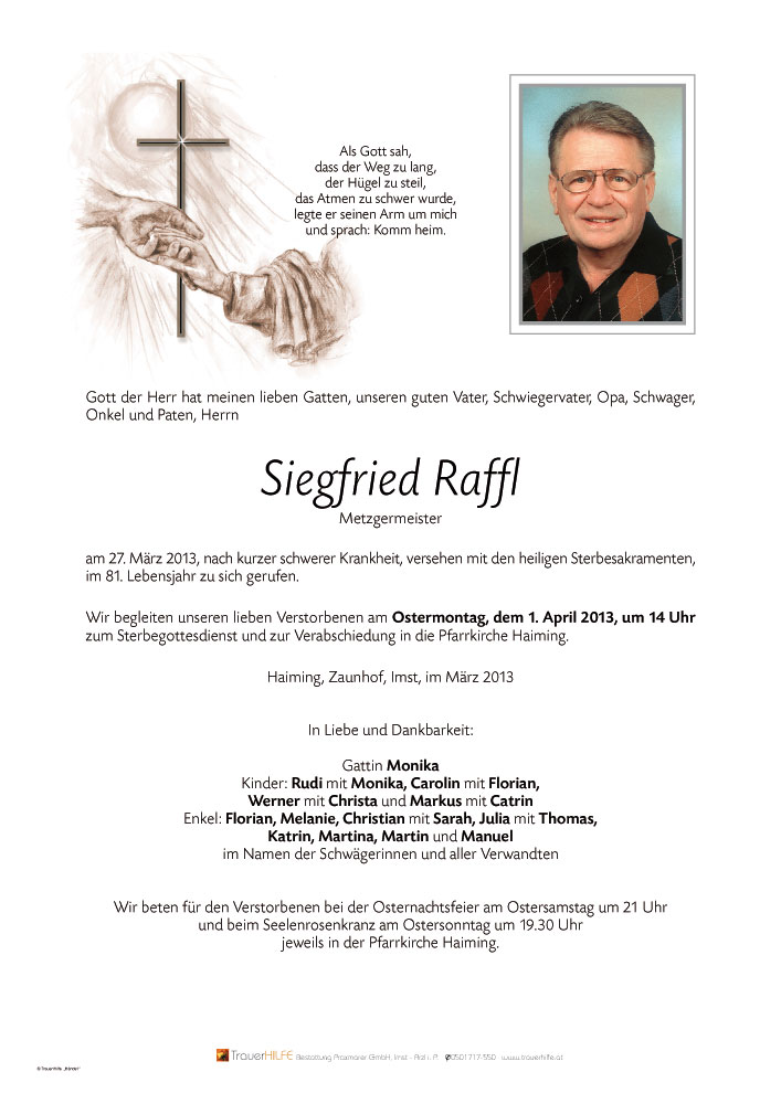 In stiller Anteilnahme entbiete ich mein aufrichtiges Beileid.06.04.2013 14:33 - Dr. Zoller Helmut