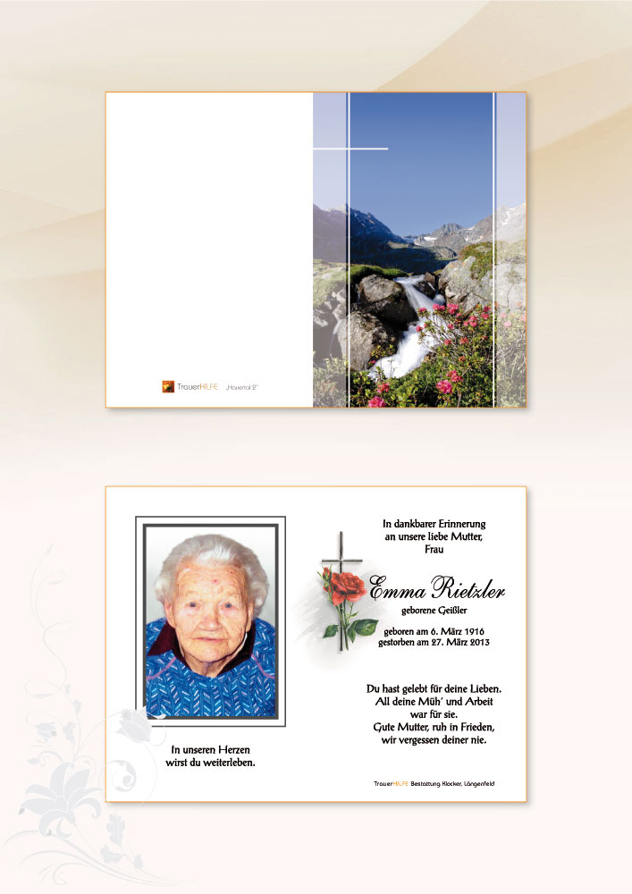 Wir werden dich nicht vergessen liebe "Rietzler Muater"28.03.2013 17:50 - Ingrid