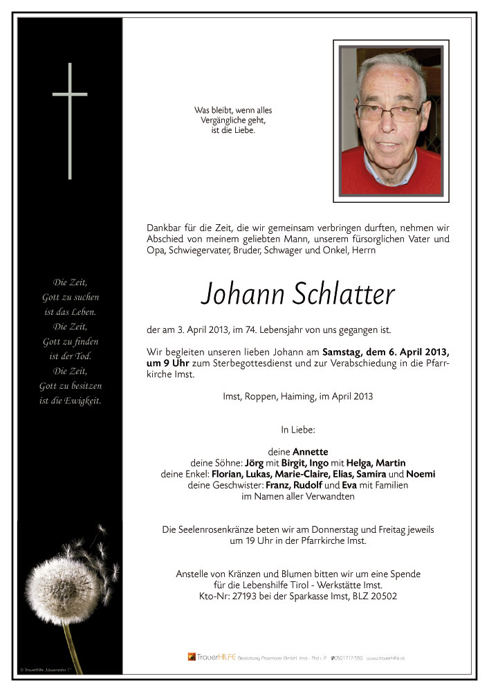 Tot ist nur, wer vergessen wird.05.04.2013 10:04 - Gabi Kropf, Tarrenz