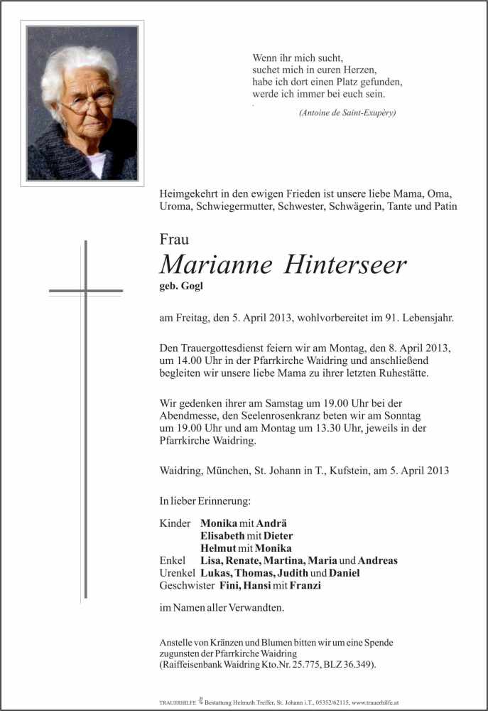 Herzliches Beileid von Marianne und Paul.05.04.2013 17:23 - Seeber Paul, Leerbergstraße 12, 6382 Kirchdorf