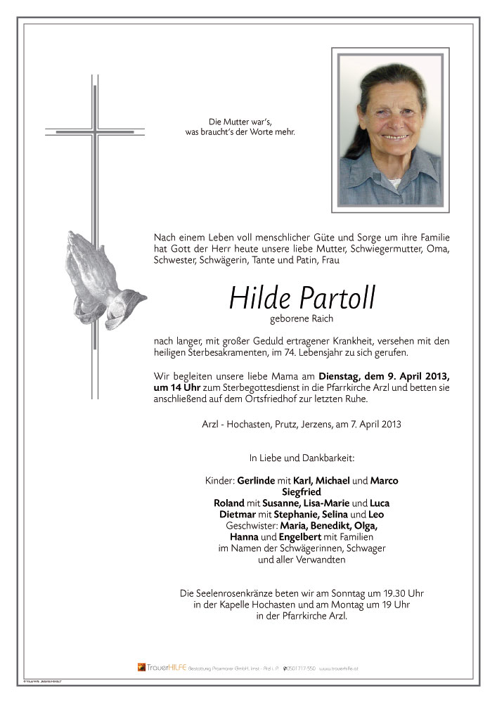 Neue Kerze für Hilde Partoll entzünden.