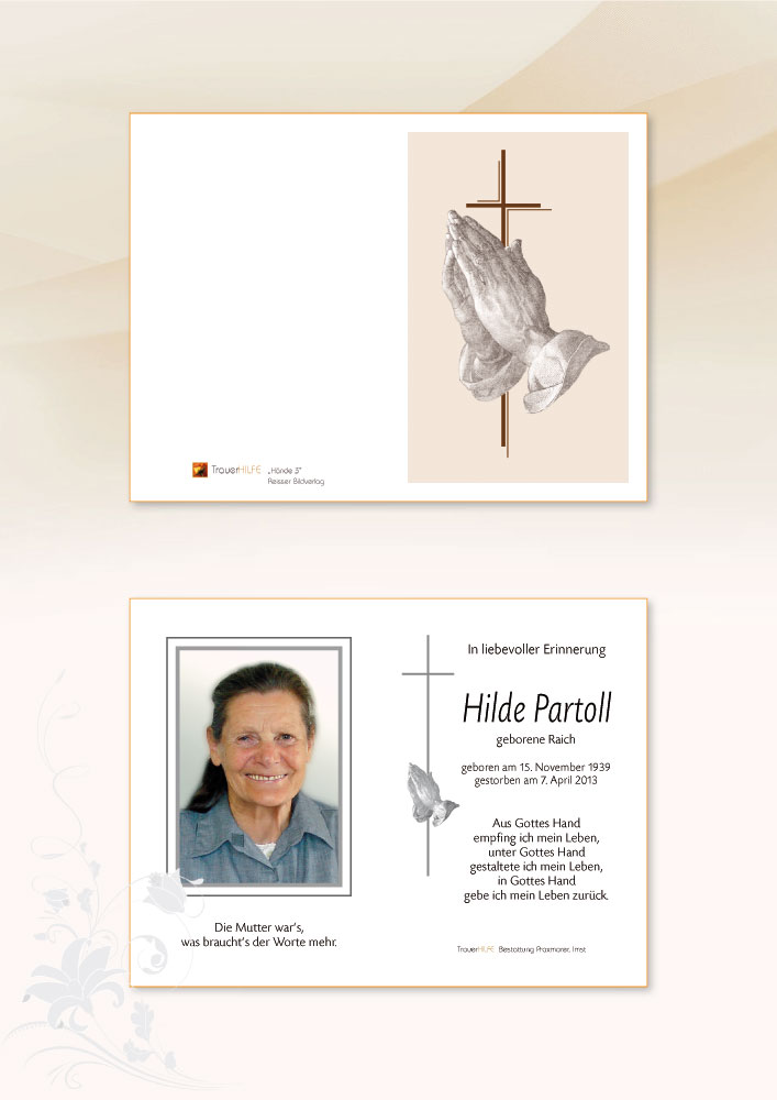 Als Gott sah,dass der Weg zu lang,der Hügel zu steil,das Atmen zu schwer wurde,legte er seinen Arm um michund sprach: Komm heim.
