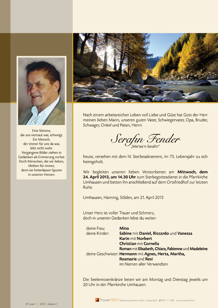 Aufrichtige Anteilnahme entbietet Fam. Walter Fender22.04.2013 12:40 - Fam. Walter Fender