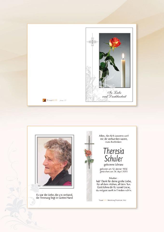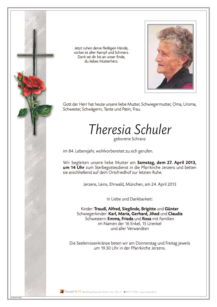 Hertlichste Anteilnahme zum Heimgang Eurer Mutter und Schwiegermutter, wünscht Rosa und Josef Huter Leins