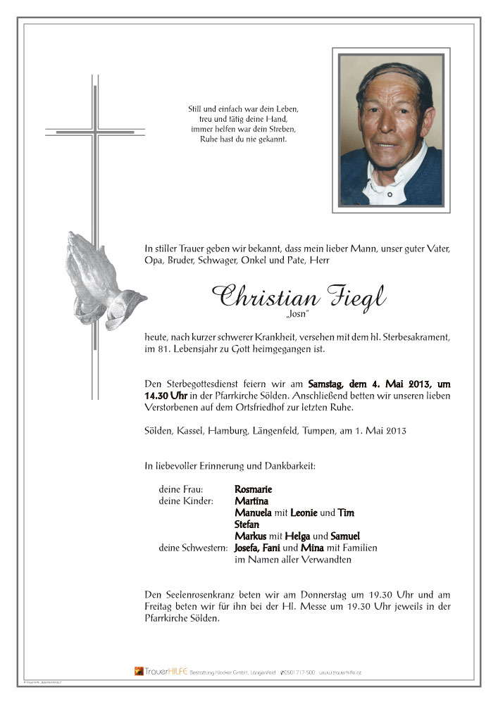 Neue Kerze für Christian Fiegl entzünden.