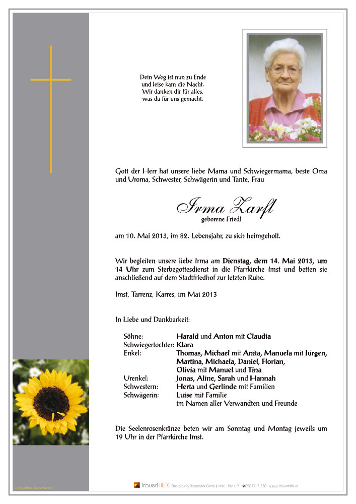 Aufrichtige Anteilnahme entbieten Silvia und Marieluise mit Familien11.05.2013 15:41 - Fam.Pacher/Happacher