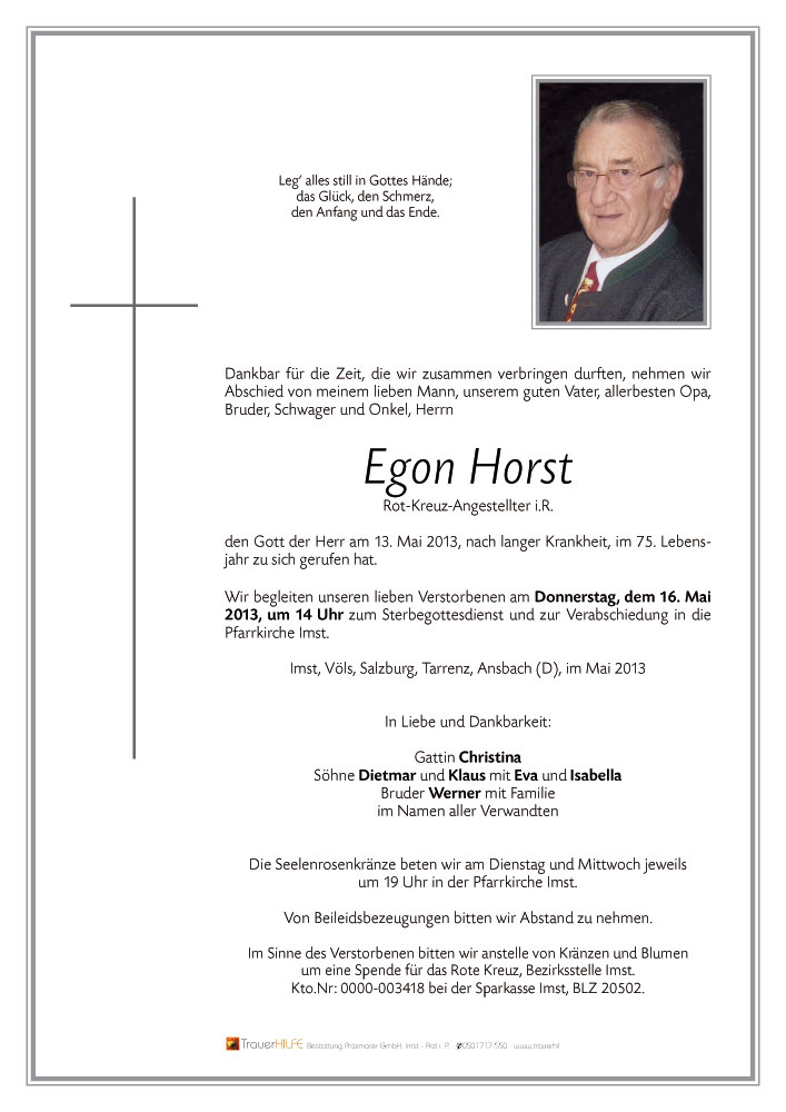 Erde zu Erde, was werden wir klagen,ist doch dazwischen viel Segen,Sonne, Freude und Liebe gelegen. Egon wir hatten viele schöne Stunden gemeinsam erlebt.Besonders beim Wagenbauen. Pfiat di ich werde Dich nie vergessen .