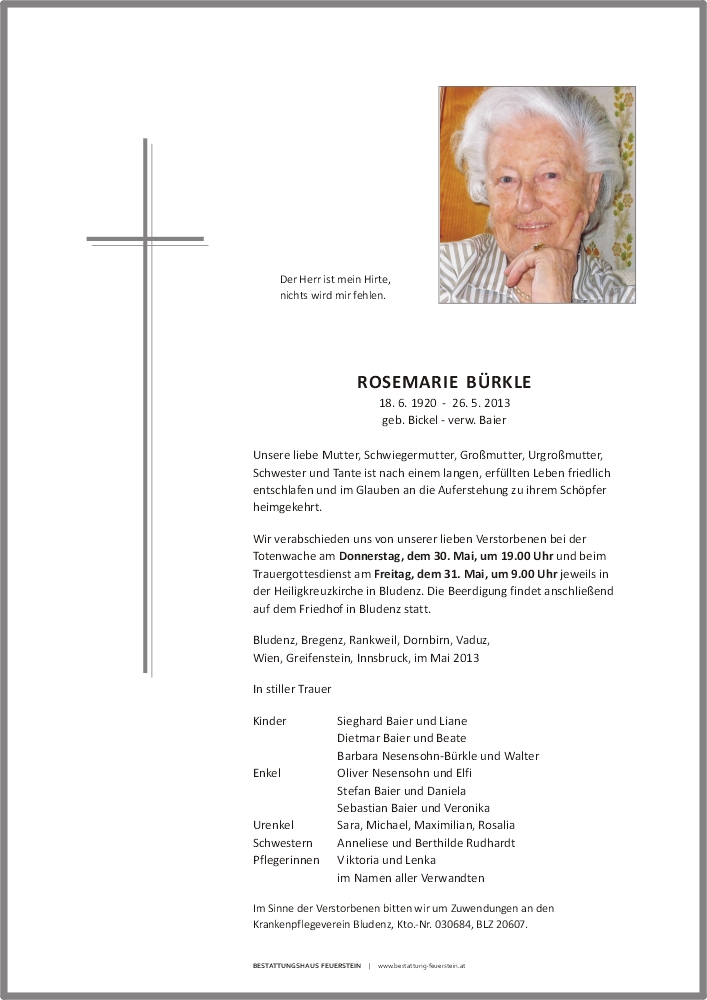 Friedhof Bludenz, † 26.05.2013 (92 Jahre)