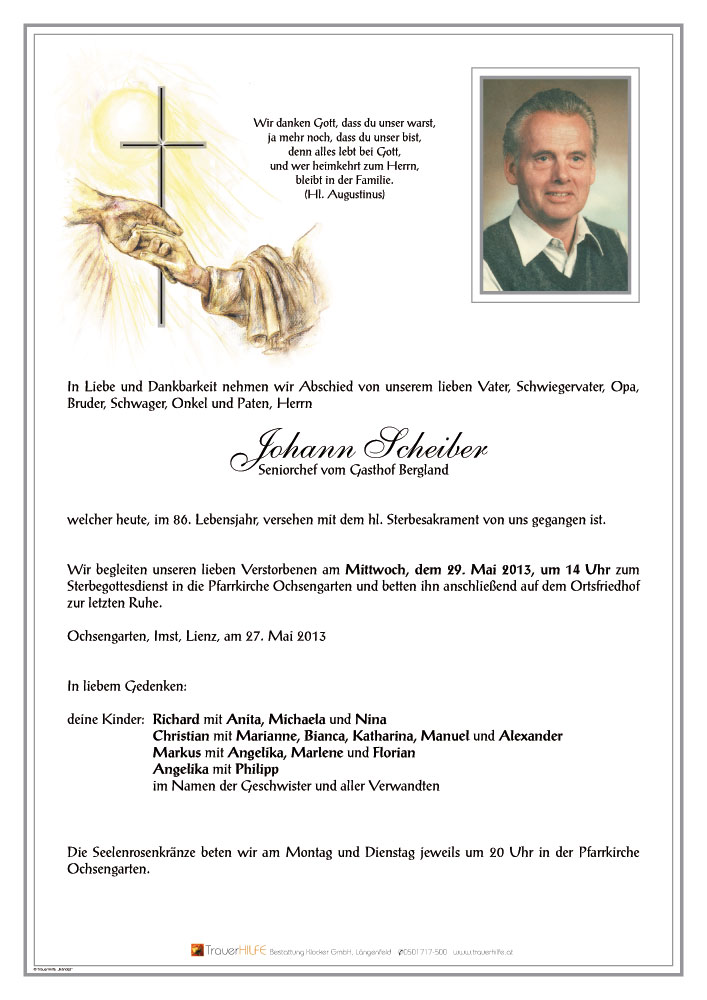 Aufrichtige Anteilnahme am Heimgang Eures Vaters und Opas Johann