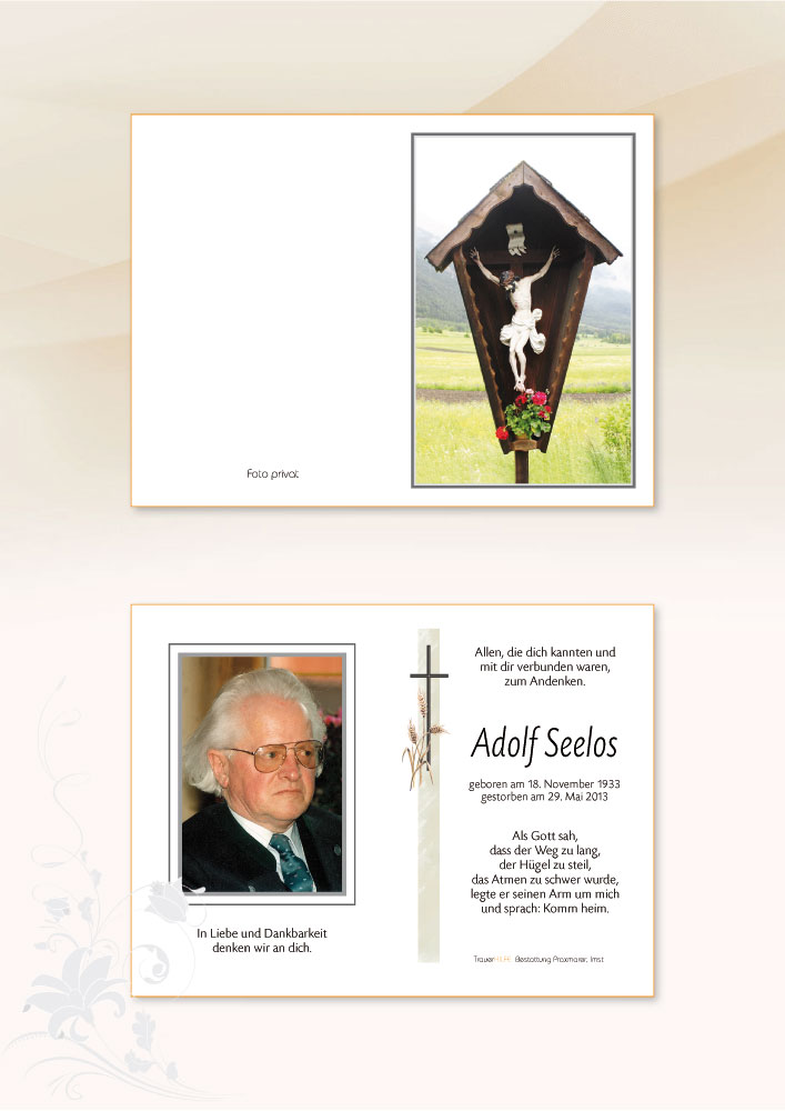 Bestattung wurde durchgeführt von: Daniel Klocker Bestattung Praxmarer GmbH Thomas Walch Str. 4 6460 - Imst Tel.: 05412 64250 zum Bestatter