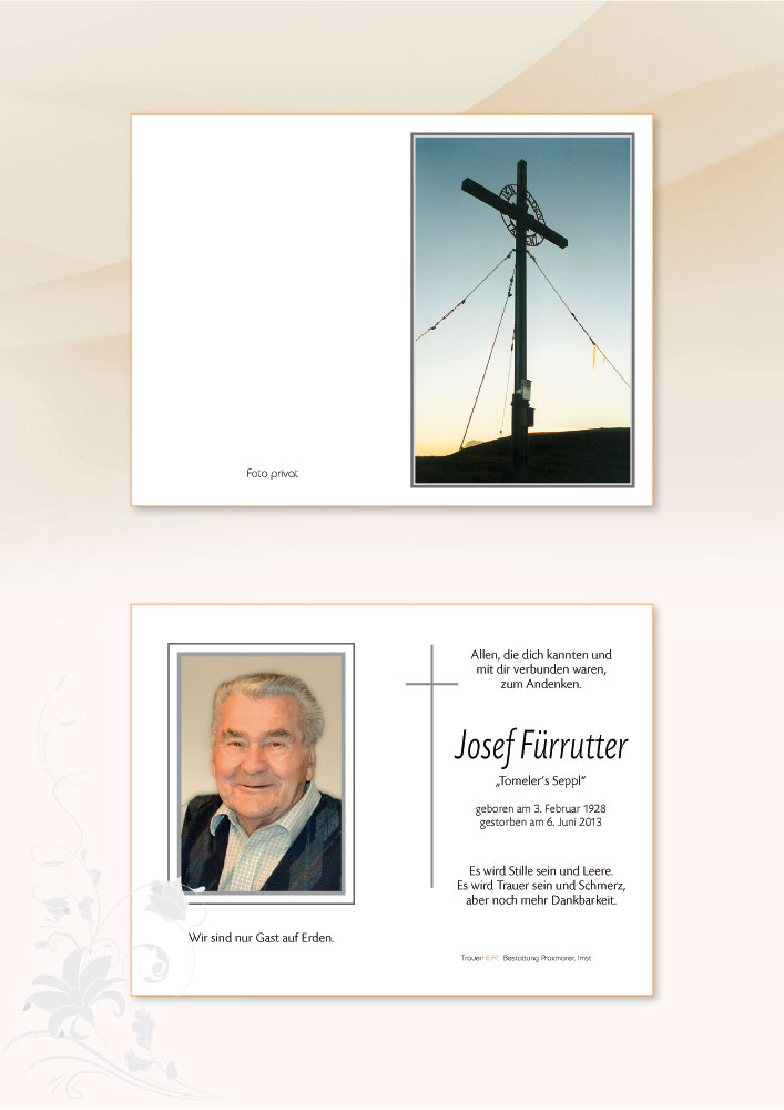 aufrichtige Anteilnahme am Heimgang deines lieben Papas.10.06.2013 14:06 - Fam. Roman & Ruth Roscic, Tumpen
