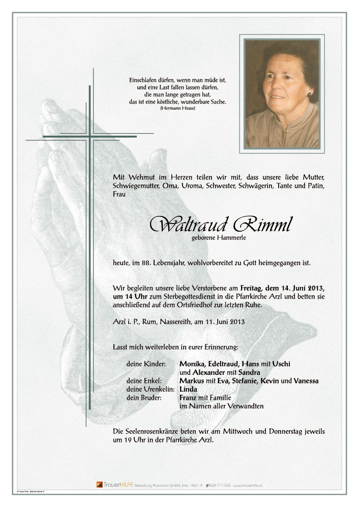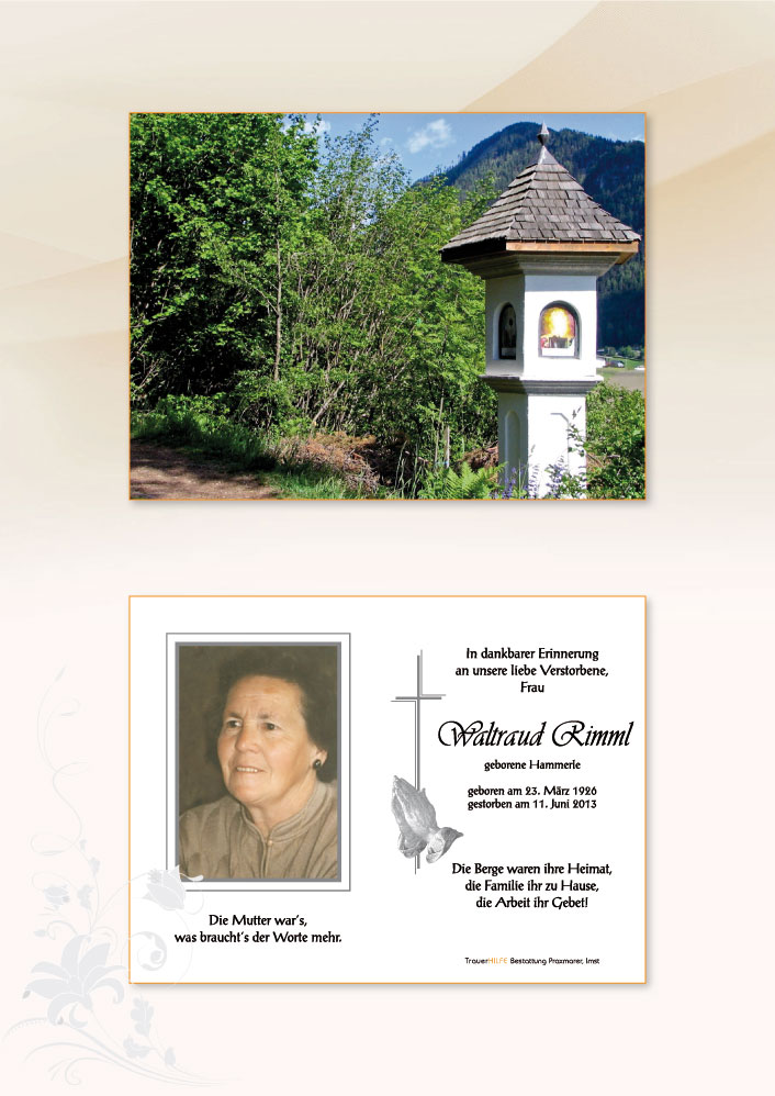 Bestattung wurde durchgeführt von: Daniel Klocker Bestattung Praxmarer GmbH Thomas Walch Str. 4 6460 - Imst Tel.: 05412 64250 zum Bestatter