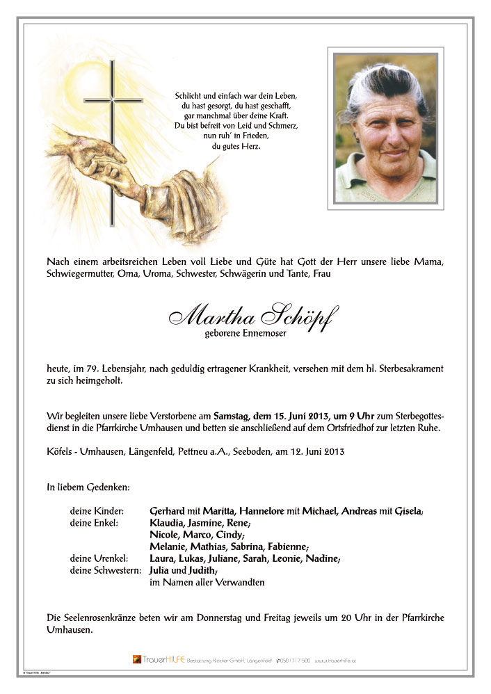 Unser herzliches Beileid15.06.2013 12:58 - Fam. Andreas Schöpf, Sölden