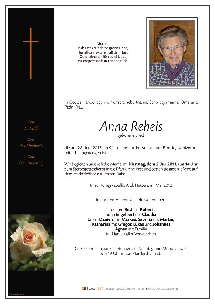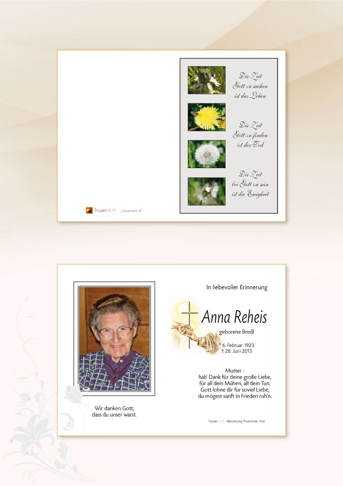 Am Ableben eurer lieben Mama und Oma möchten wir euch allen unser