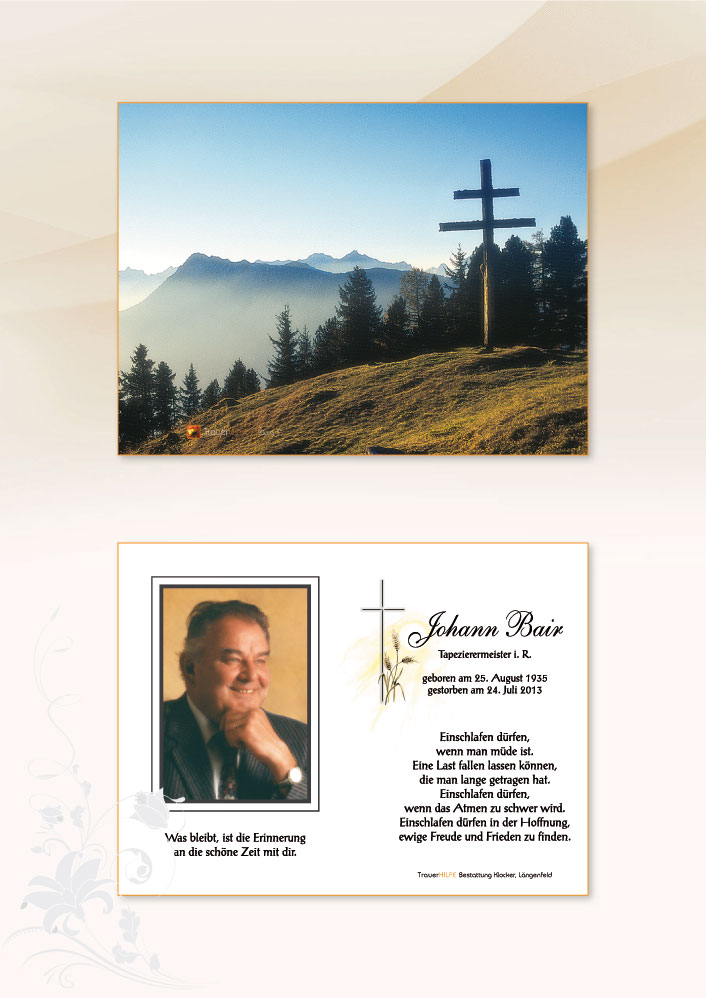 Nach der Zeit der Tränen und der tiefen Trauer bleibt die Erinnerung. Die Erinnerung ist unsterblich und gibt uns Trost und Kraft.