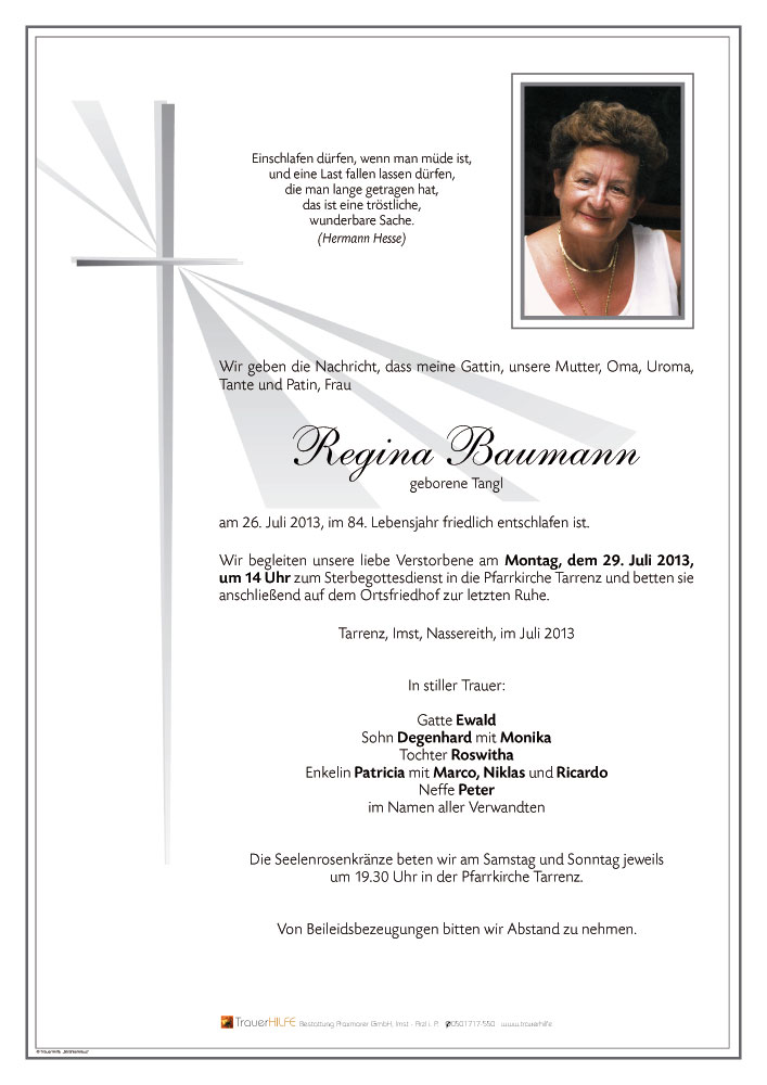 Friedhof Tarrenz, † 26.07.2013 (83 Jahre)