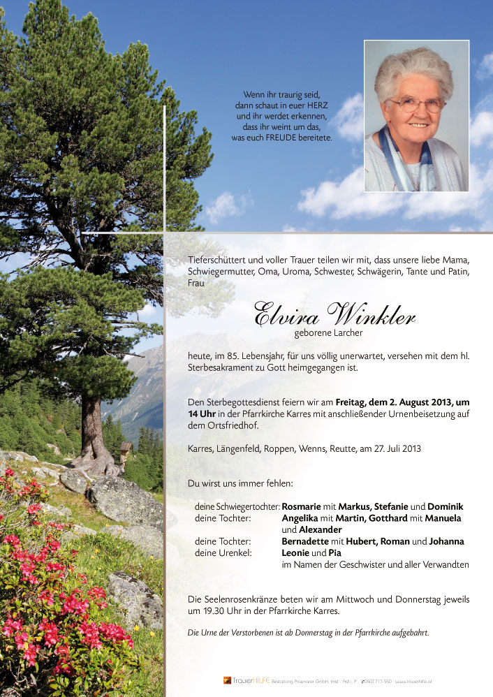 Der Herrgott hat Elvira zu sich heimgeholt.
