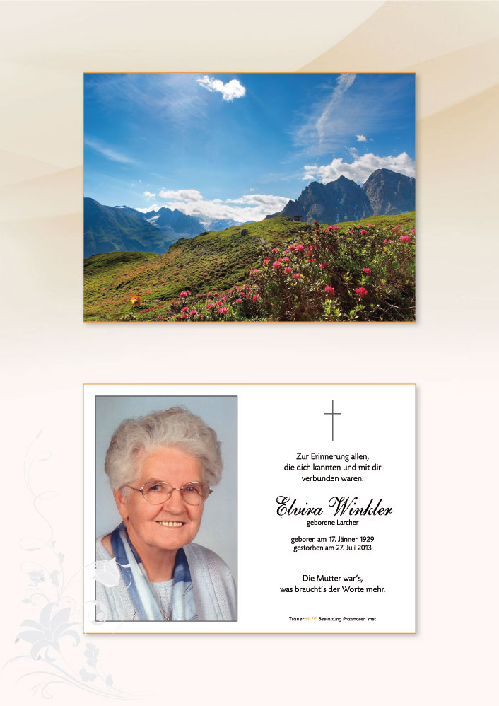 Still und einfach war dein Leben,treu und tätig deine Hand,immer helfen war dein Streben,Ruhe hast du nie gekannt.29.07.2013 19:31 - Fam. Lechner Roland