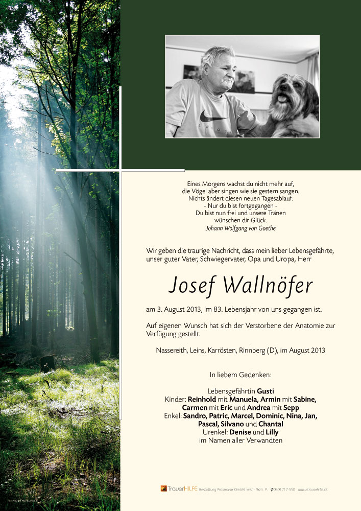 Bestattung wurde durchgeführt von: Daniel Klocker Bestattung Praxmarer GmbH Thomas Walch Str. 4 6460 - Imst Tel.: 05412 64250 zum Bestatter