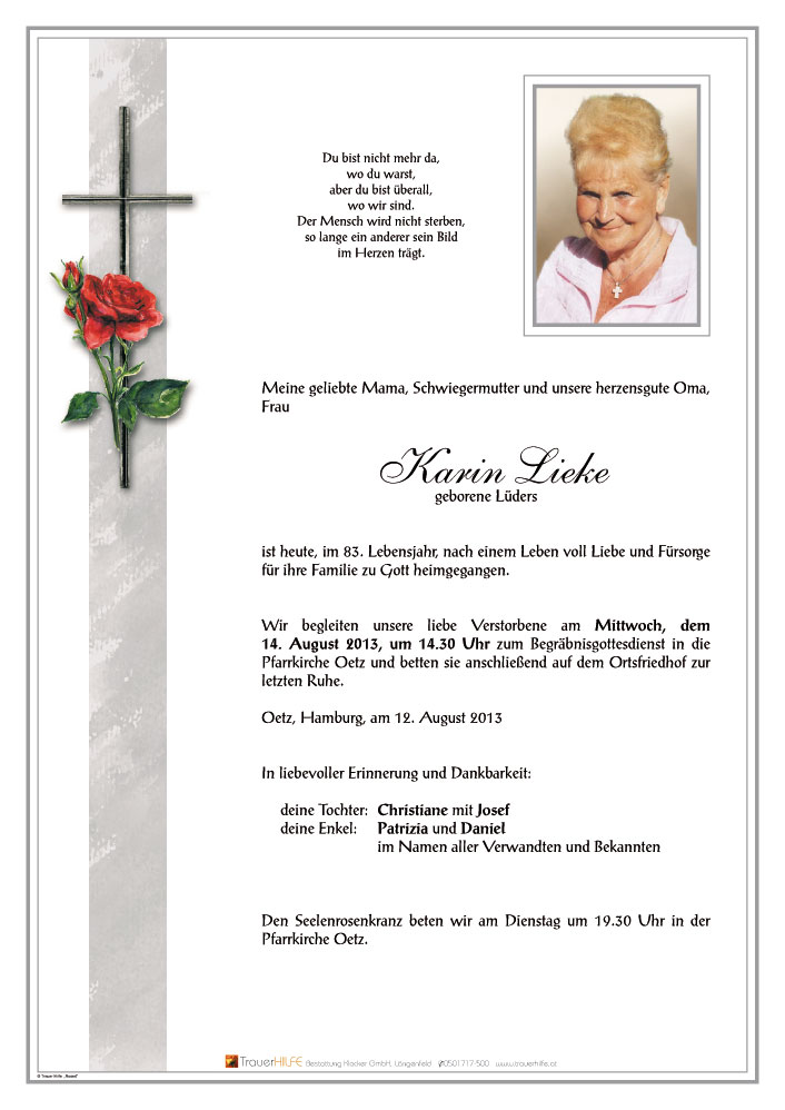 Liebe Christiane mit Angehörige,