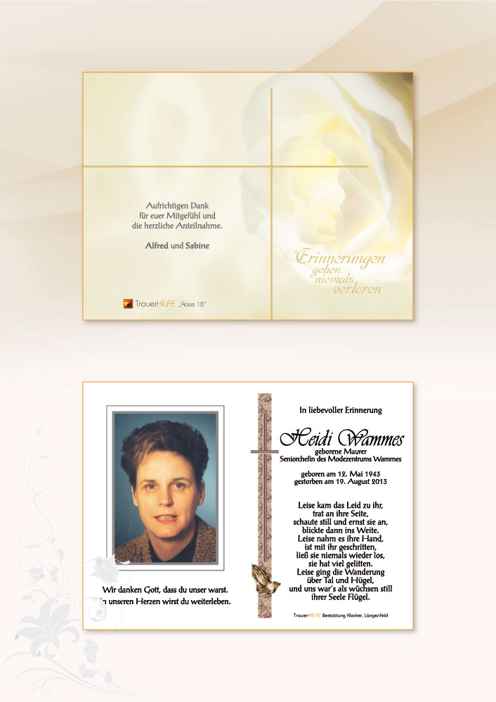 Wir wünschen Euch Stärke in Eurer Trauer und Zuversicht in der Gewissheit, daß für Heidi die leidvolle Zeit ihrer Krankheit zu Ende ist.