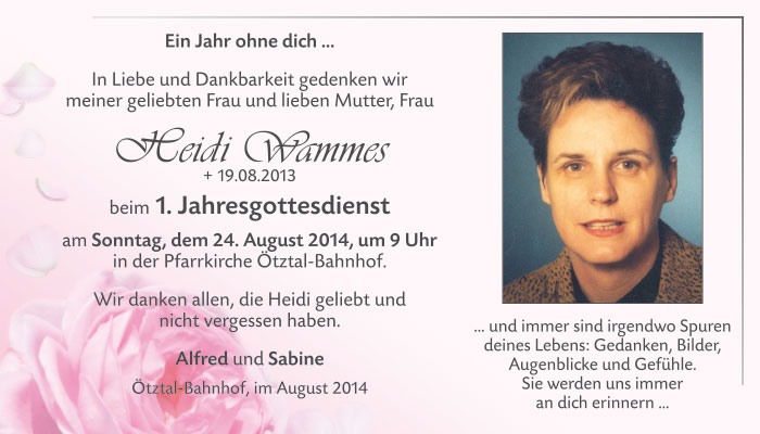 Neue Kerze für Heidi Wammes entzünden.