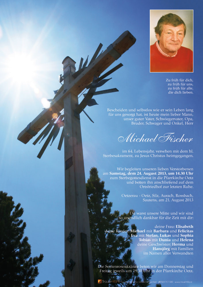 Ich habe Michl nicht allzu gut gekannt, doch seine freundlichen netten Worte nach der Kirche werden mir fehlen. Ein Mensch ist nicht mehr. Ich wünsche dir dass dein Vertrauen in Gott dir die nötige Kraft gibt, diesen Schicksalschlag zu tragen.