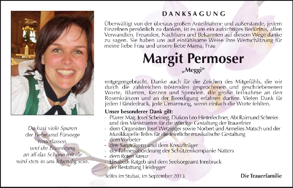 In stillem Gedenken Karin und Thomas mit Familie10.09.2013 07:25 - Fam. Huter-Mattes Karin, Natters