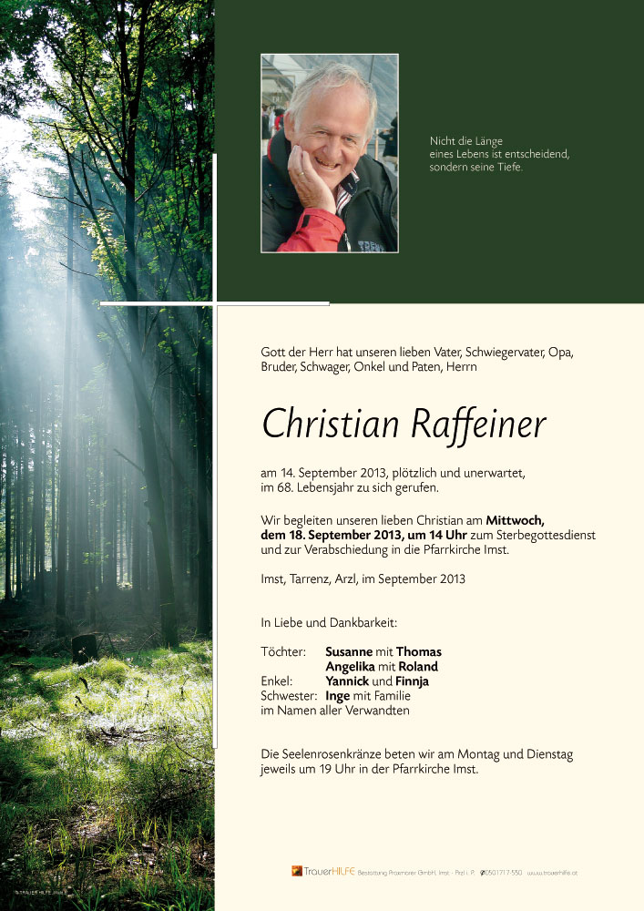 in gedenken an christian entbieten wir unsere herzliche anteilnahme.