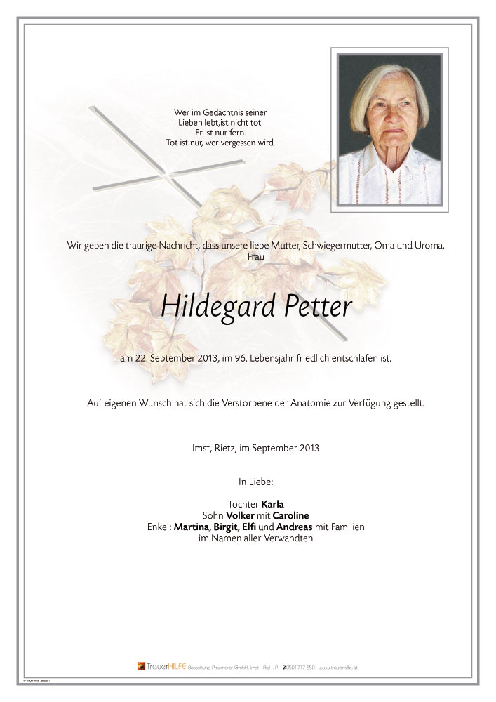 Friedhof Imst, † 22.09.2013 (95 Jahre)