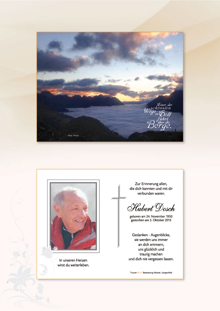 Immer freundlich, nett, mit einem Lächeln im Gesicht. So werde ich dich lieber Hubert als guter Nachbar von meiner Schwester in Erinnerung behalten.Es ist noch gar nicht lange her, als ich dich im Krankenhaus gesehen habe. Du hast gekämpft und gelächelt. Herzliche Anteilnahme und viel Kraft wünsche ich deiner Familie