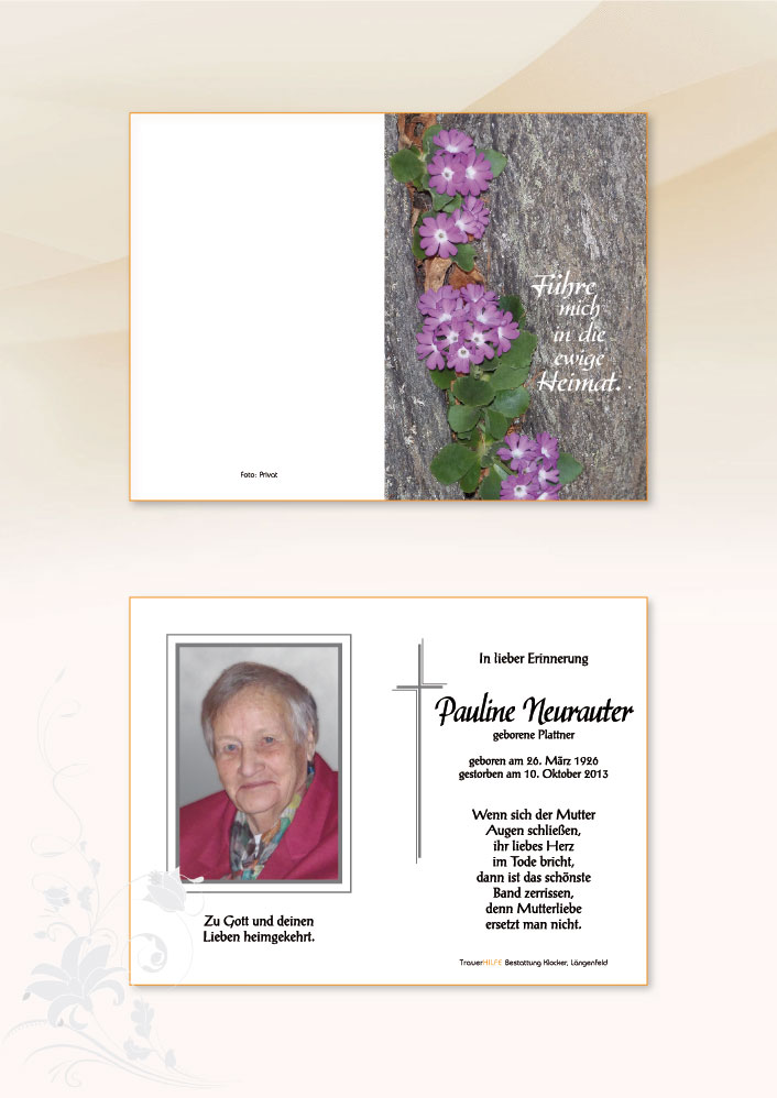 Für eure Mama und Oma ist die irdische Reise, die sie zuletzt noch ins Vorarlberg geführt hat, und für die ihr du, liebe Andrea, den Koffer gepackt hast, zu Ende. Den Koffer für ihre letzte Reise in die ewige Heimat hat sie sich selber gepackt - unerwartet schnell.