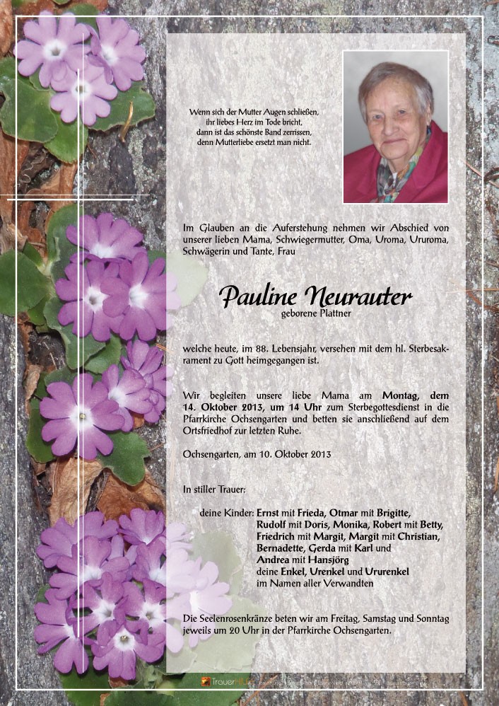 Unser aufrichtiges Mitgefühl am Heimgang deiner lieben Mama und eurer Oma.