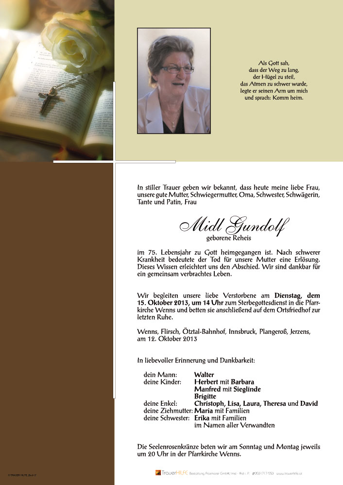 Liebe Brigitte Aufrichtige Anteilnahme zum Tod deiner Mutter entbieten Anita Dangl m. Fam.(Weber)14.10.2013 11:19 - Dangl Anita m. Fam.