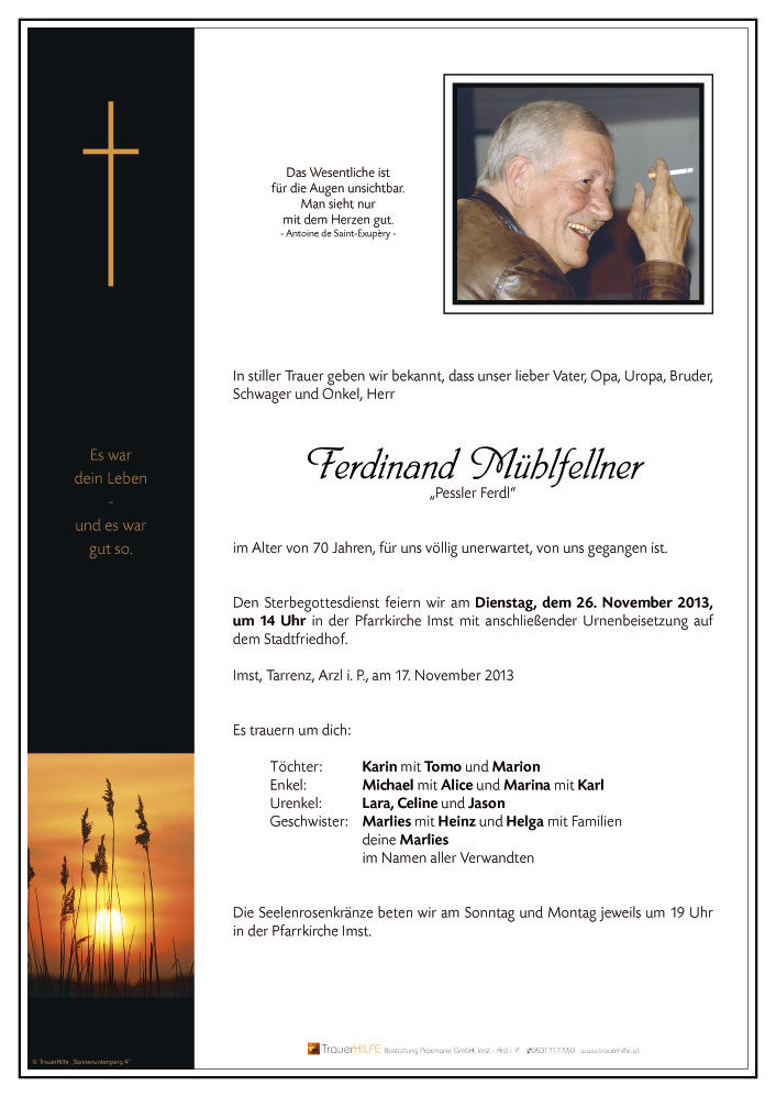 Ferdl möchten wir euch allen unser aufrichtiges Beileid aussprechen!