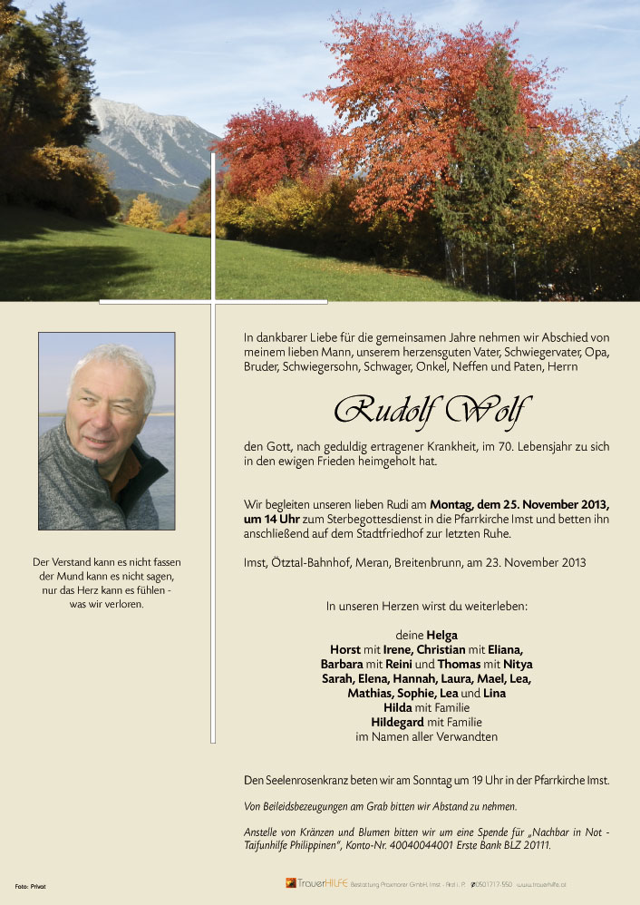 Aufrichtiges Beileid entbieten Familie Stefan und Manuela Weirather24.11.2013 02:14 - Fam. Stefan und Manuela Weirather