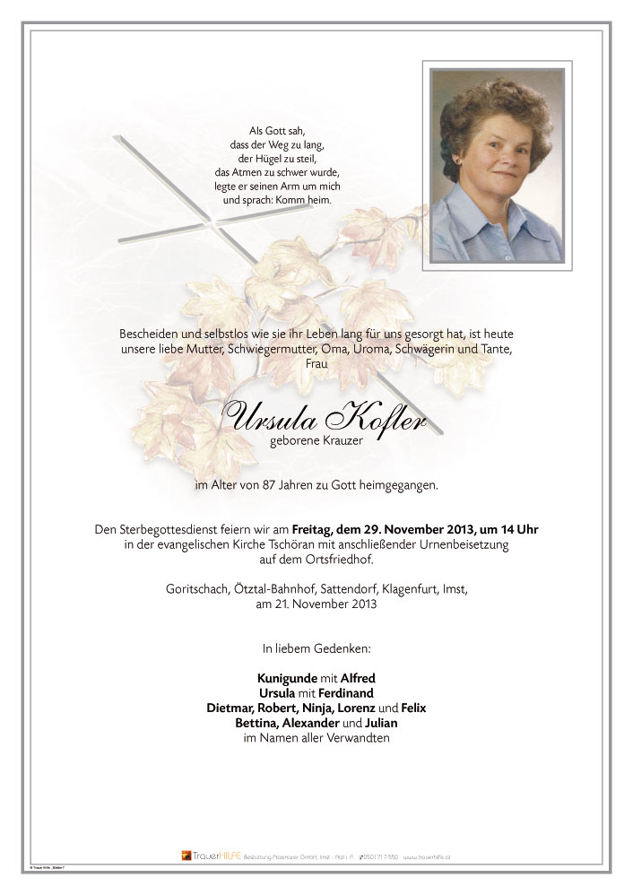 Im stillen Gedenken an Frau Ursula Kofler.