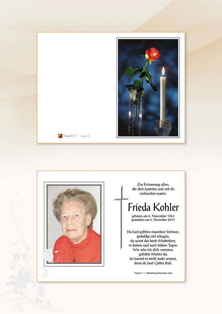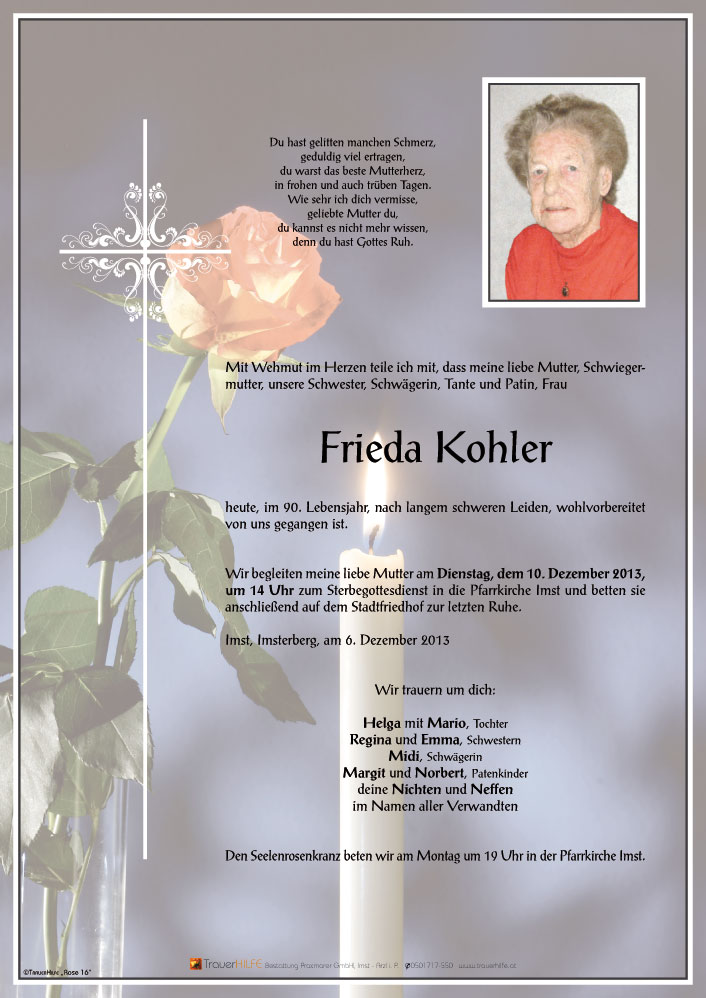 Als Gott sah,dass der Weg zu lang,der Hügel zu steil,das Atmen zu schwer wurde,legte er seinen Arm um Frieda und sprach: Komm heim!