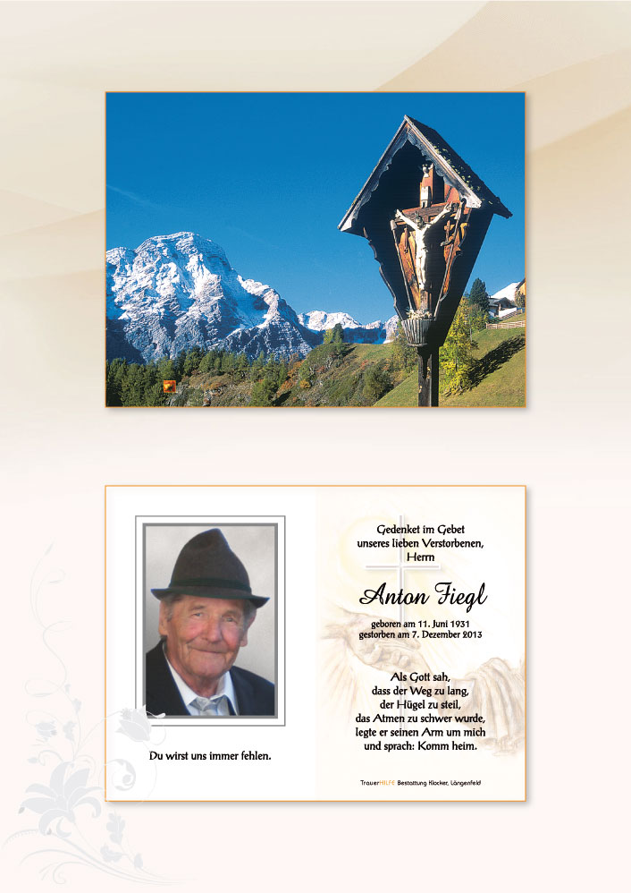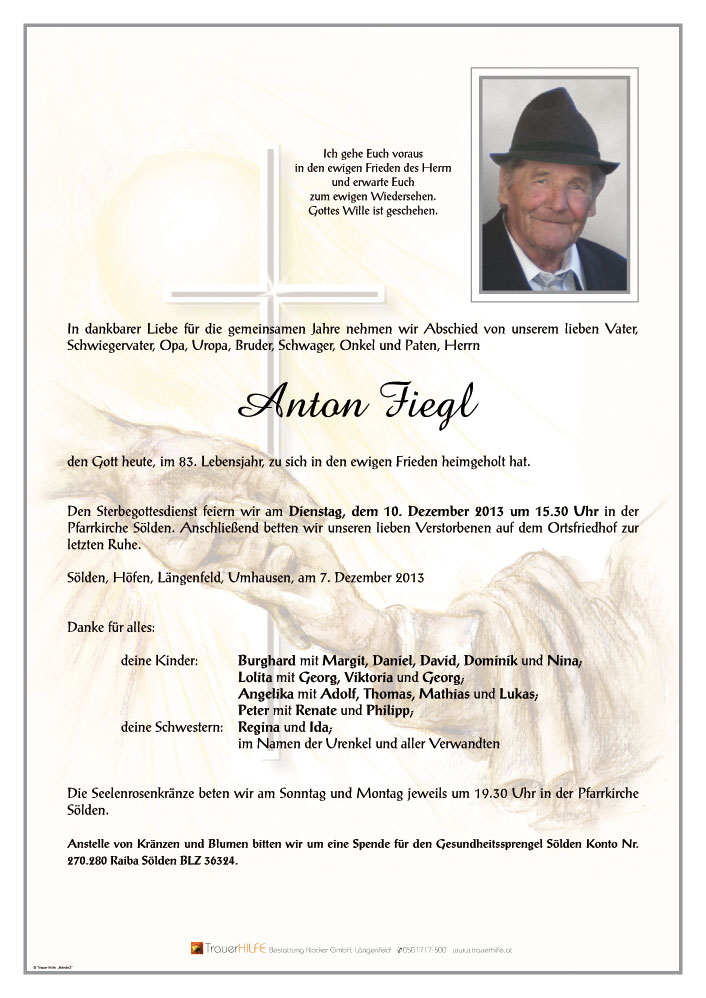 Neue Kerze für Anton Fiegl entzünden.