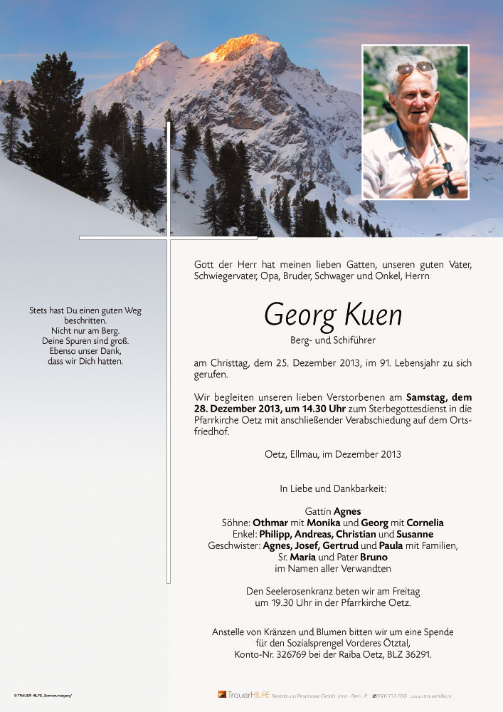 Lieber Othmar, Monika, Susanne und Christian, am Hl.Tag, dem Christtag, ist Euer geliebter Vater und Opa zu seinem Schöpfer heimgegangen, ein ganz besonderer Tag für einen besonderen Menschen, den Ihr in Liebe und Dankbarkeit in Erinnerung behalten werdet und mit dem Ihr sehr verbunden gewesen seid.