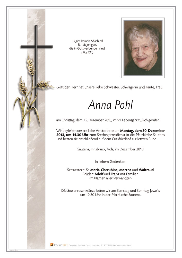 Friedhof Sautens, † 25.12.2013 (90 Jahre)