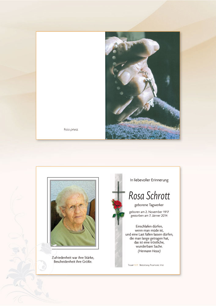 Sehr traurig habe ich hier in Vorarlberg vom Tod eurer Mama gehört. Es tut mir leid. War sie mir doch eine ganz liebe Nachbarin, die ich nie vergessen werde. ich bete für sie und werde am Samstag in Gedanken bei euch sein. melde mich wenn ich zurück bin. Waltraud09.01.2014 09:38 - Waltraud Wutsch