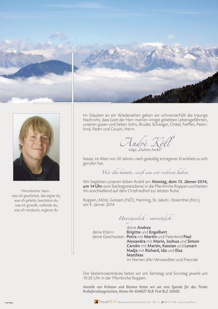 viel kraft in der schwierigen zeit den hinterbliebenen.12.01.2014 19:04 - renate peter krobath