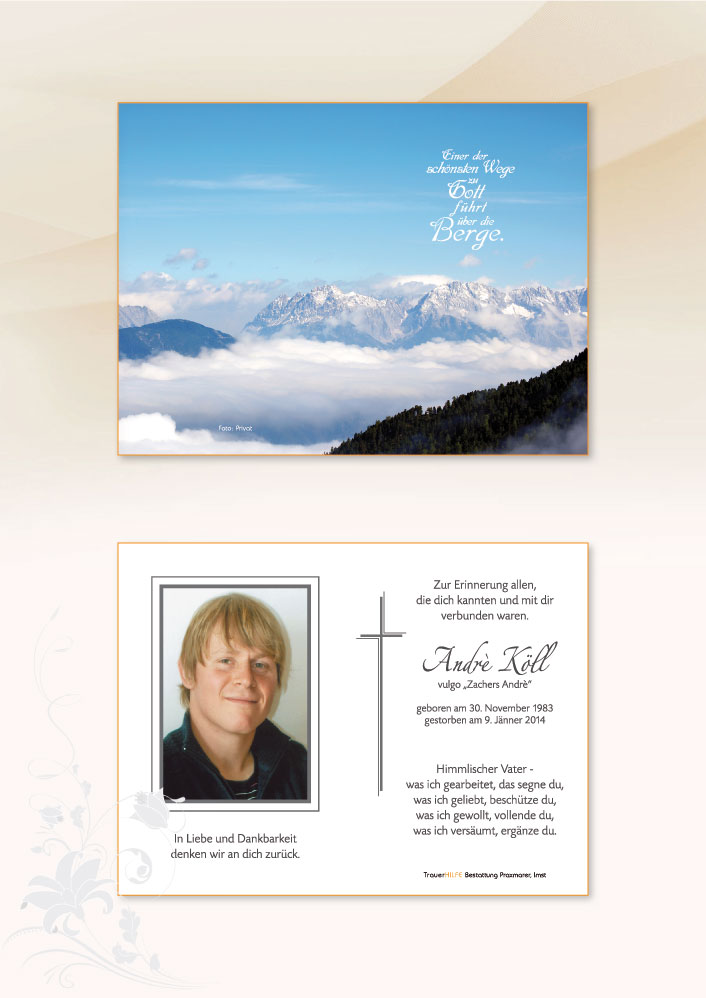 Als Gott sah,dass der Weg zu lang,der Hügel zu steil,das Atmen zu schwer wurde,legte er seinen Arm um michund sprach: Komm heim.