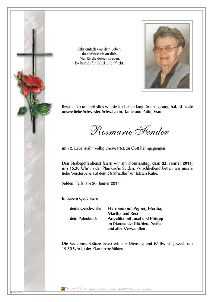 Aufrichtige Anteilnahme und viel Kraft in der Zeit des Abschiednehmens.21.01.2014 15:29 - Fam.Löffler Gerhard