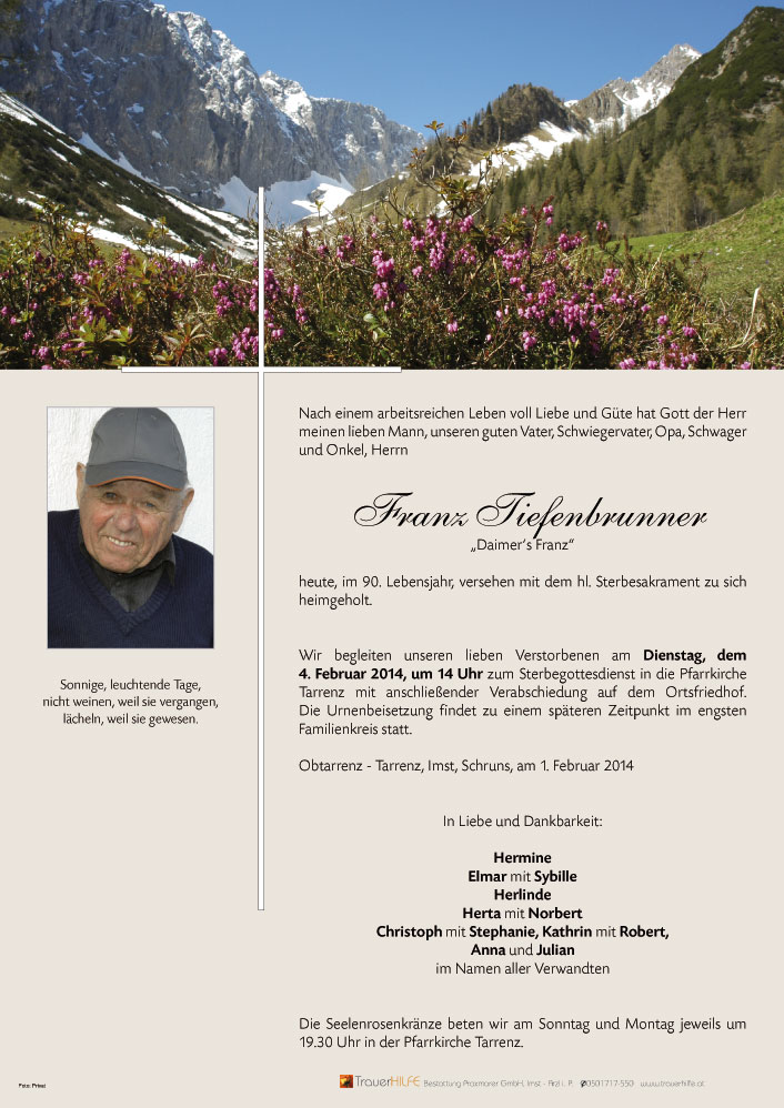 Aufrichtige Anteilnahme entbietet Familie Schwarz03.02.2014 12:58 - Familie Schwarz